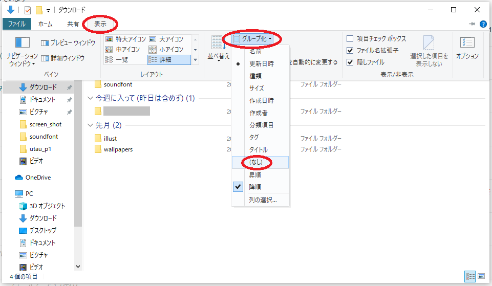 ダウンロードフォルダの表示が日付で分類されているのをやめたいときは パソコンを便利に
