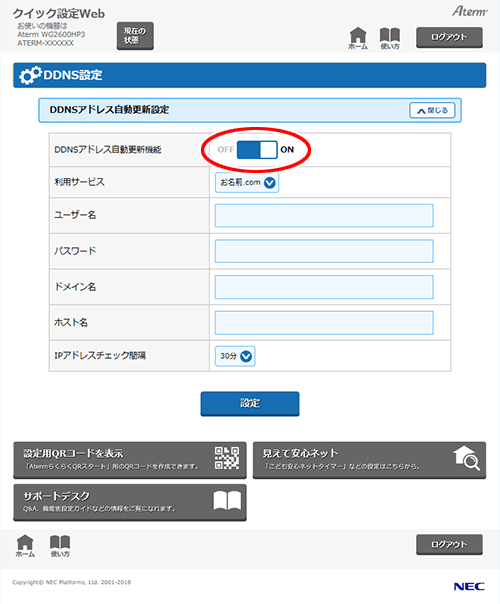 Lan側に接続した端末などにアクセスする ダイナミックdns機能 Aterm Wg2600hp3 ユーザーズマニュアル