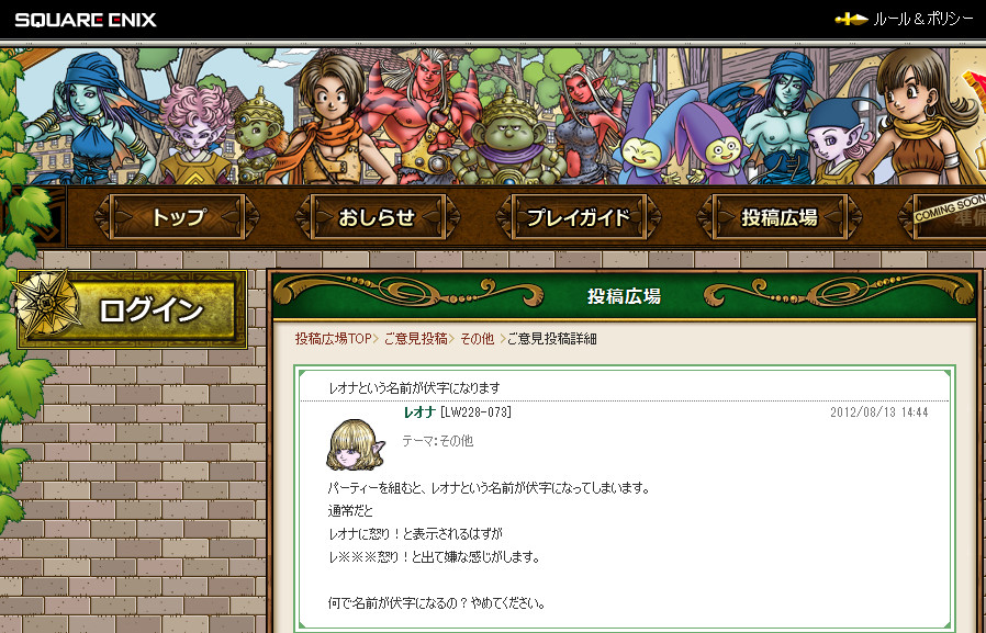ドラゴンクエスト10 の質問意見 レオナ という名前が伏字になります 何で名前が伏字になるの やめてください 移転しました オタク Com 跡地