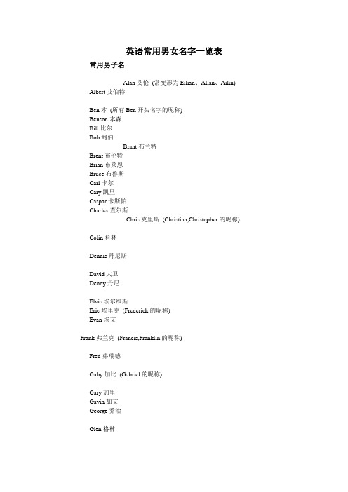 常见男女英文名中英对照 百度文库