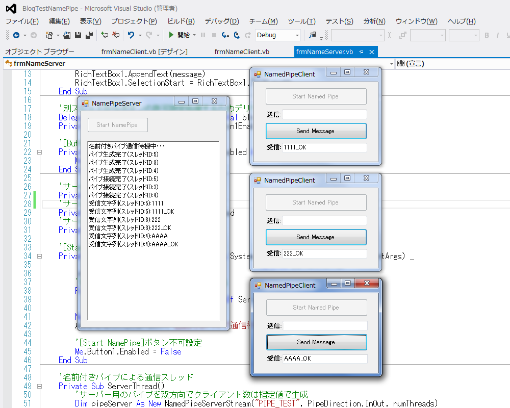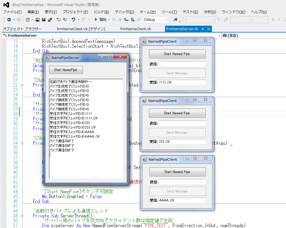 名前付きパイプを使ったプロセス間通信についてその3 クライアントとの双方向通信 Vb Net Tips などプログラミングについて