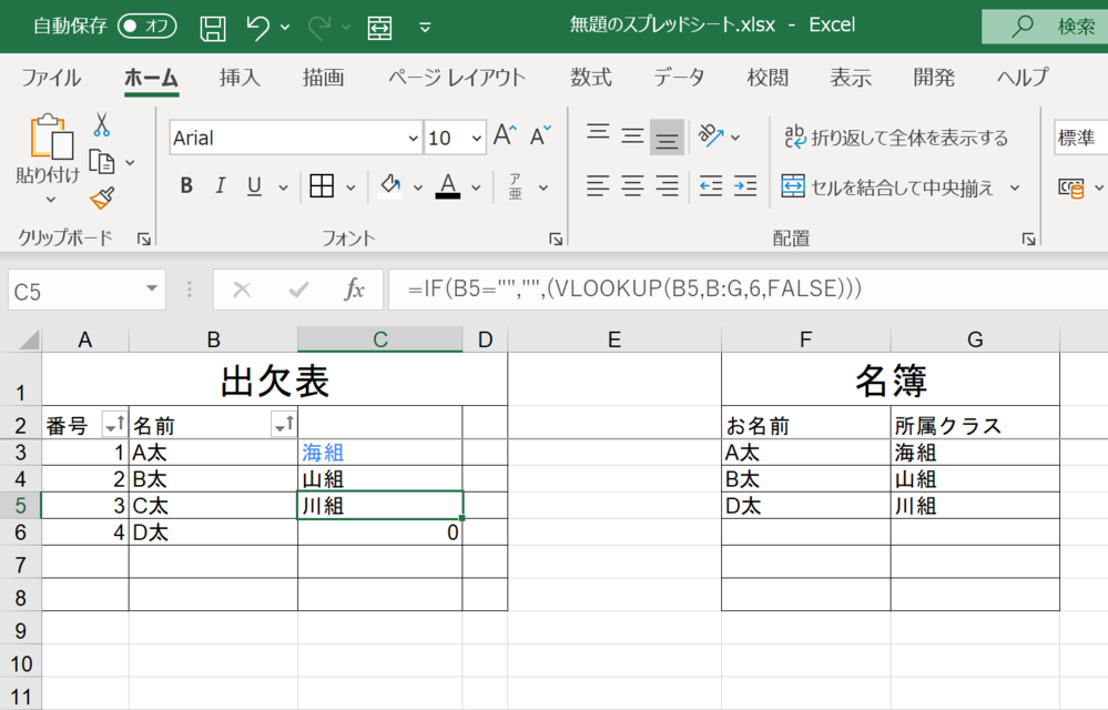 Vlookup関数で 名前が一致した場合にのみ所属クラスを参照する Yahoo 知恵袋
