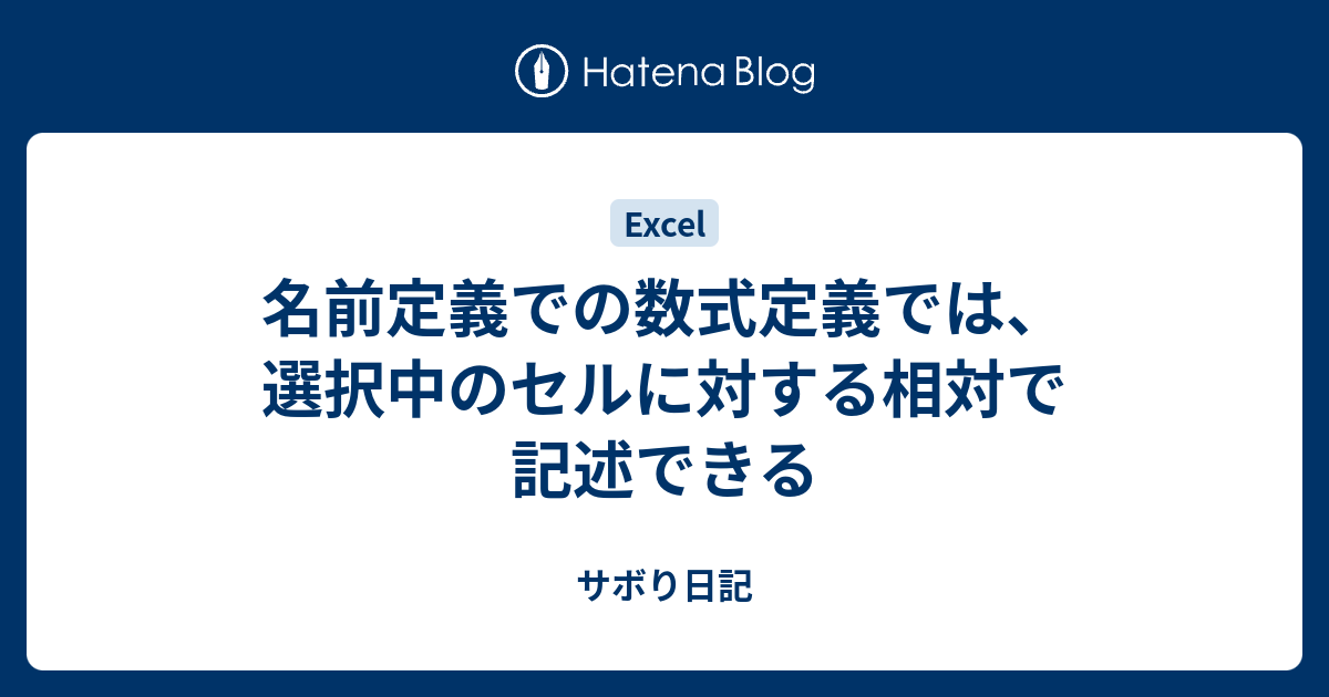 名前定義での数式定義では 選択中のセルに対する相対で記述できる サボり日記