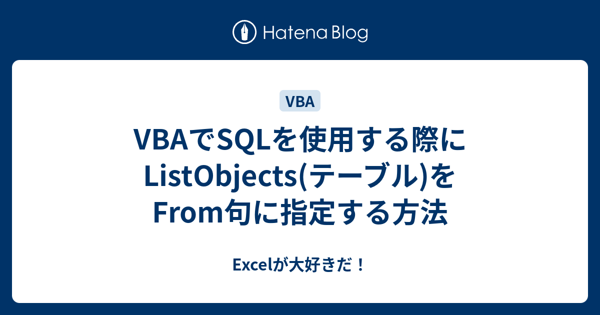 Vbaでsqlを使用する際にlistobjects テーブル をfrom句に指定する方法 Excelが大好きだ