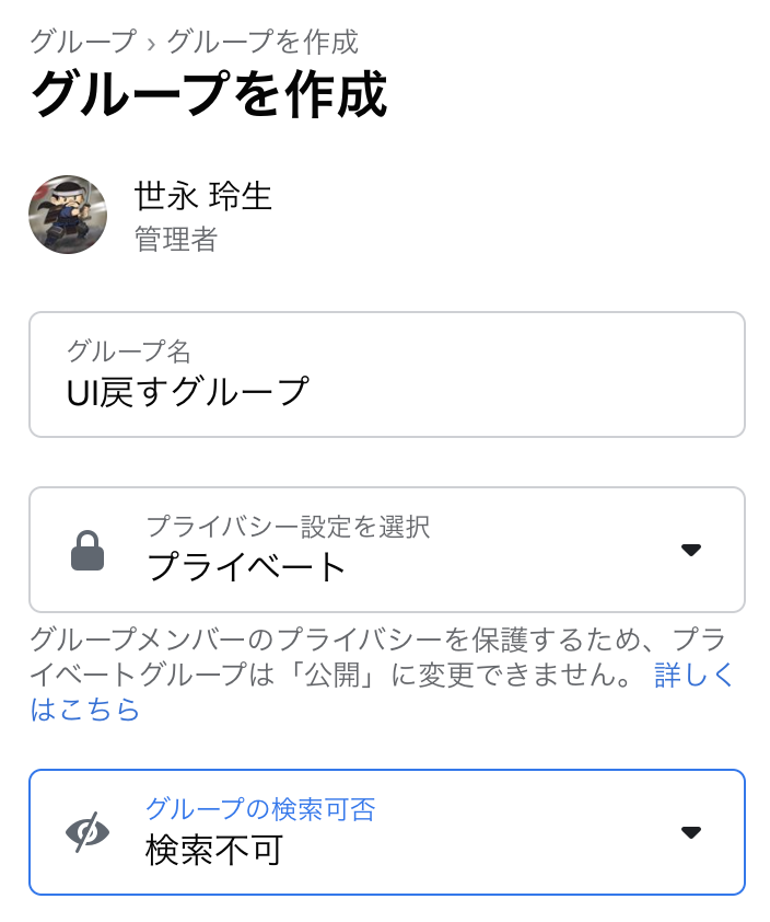 Facebook グループを作成する