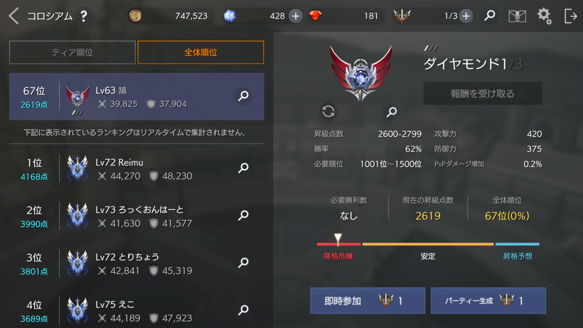 鵠 On Twitter ダイヤモンドデビュー コロシアムのカッコイイマークを名前の横に付けれるの本当に好き 最近普通にトップランカーさんと当たるからスキル構成考え直し中です
